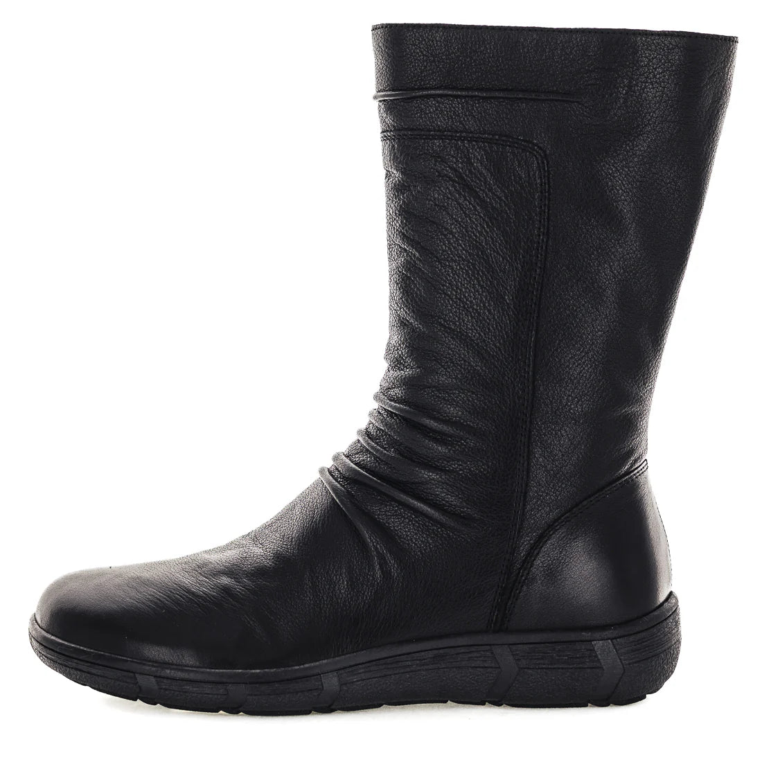 - Soft leather ruched mid-calf boot